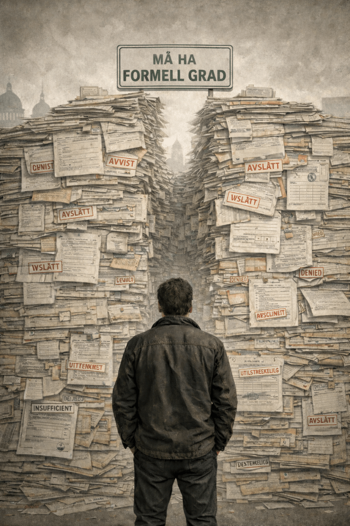 Kompetanse er sammensatt. En person kan ha jobbet i årevis for samme etat, kjenne systemene og regelverket fra innsiden og sitte på akkurat den praktiske kunnskapen stillingen etterspør og likevel bli automatisk avvist fordi papirene ikke er i orden. Ingen saksbehandler leser CV-en. Ingen gjør en helhetsvurdering. Kravet er enten oppfylt eller ikke.